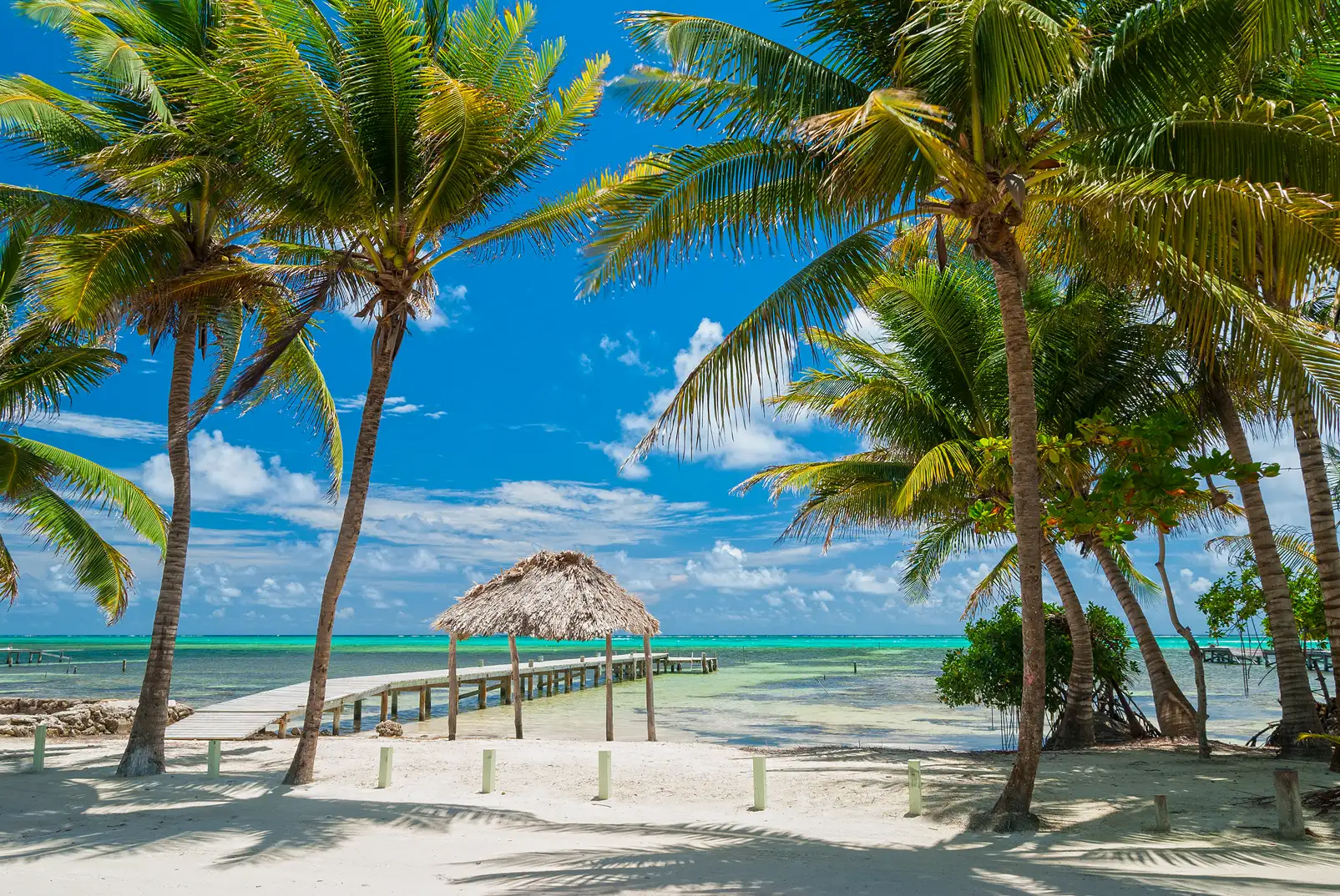 This image captures the serene beauty of Ambergris Caye, Belize, a place where the vibrant blue of the Caribbean meets the soft, inviting sands of a tropical paradise. The rustic pier extending into the crystal-clear waters hints at the island's rich maritime history, a legacy of the Mayan traders and fishermen who once navigated these shores. Ambergris Caye, known for its laid-back charm and stunning natural beauty, offers a glimpse into a world where time slows down, inviting you to escape and immerse yourself in the tranquil rhythm of island life. The palapa, a traditional open-sided structure, stands as a testament to the local culture, providing shade and a gathering place for those seeking respite from the sun. This photograph not only showcases a picturesque scene but also encapsulates the spirit of Ambergris Caye, a destination where adventure and relaxation coexist in perfect harmony.